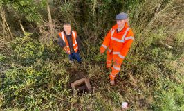 After that, we went on a treasure hunt at Rushcliffe Halt with a friend from the Loughborough end. We once had a tip-off that the original water supply to the signalbox came from a point on Gotham Road - but never had a suitable moment to go looking. Today we did, and found that X really does mark the spot! There's an old concrete box buried in the verge, and a corresponding pipe crossing a ditch nearby. This is probably long past being usable, but still worth investigating.