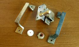 Lastly, a photograph of the window hardware from Hotchley Hill, from which we have scrubbed a thick layer of dirt and corrosion. There are scratches and pits that cannot reasonably be removed, but they are solid brass, and built to last in the finest railway tradition. These (and the new rubber buffers for the sliding casements) will return to the windows shortly!