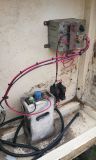 Where the section started, on the northern approach to the level crossing, there was a track circuit feed in a wooden location case, maintaining a low voltage accross the rails. Besides being in the wrong place, this case was past being servicable, with the wood weak enough to push a finger through. This we removed.
