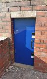 The diminutive new door has been painted and secured to the "ash stash", which provides us with tidy storage space for low-value, rarely-used items.