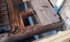This Saturday, we took a big step forward at Hotchley Hill, starting work on the floor upstairs, replacing timbers that have been badly rotten and burnt over the last three decades.