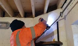 The new floor adds lateral stability to the frame, but for extra restraint, we have added a pair of rods anchoring the top of the standards to the back wall, with plates to spread the load on the outside. It now feels much more solid.