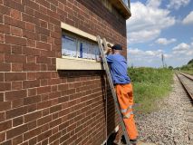 Back to your usual programming of project updates, I am delighted to say Hotchley Hill now has its first glazing for decades. We have fitted four panes of UV-protected polycarbonate sheet to the small windows in the locking room, and have disposed of the tatty old plywood panel previously covering the frames.