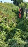 Our resident landscaping expert sharpened his sickle, and was soon joined by both Edward and Willow in mowing the bank over the bottle ditch.