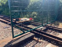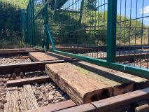 Under the big gates, we fitted two more panels of old sleepers in two of the four-foots (if that's the plural), to prevent intruders climbing under. We also adjusted the hinges so the gates close more freely, and appreciated the new high-quality lock, and anti-climb paint applied during the week.