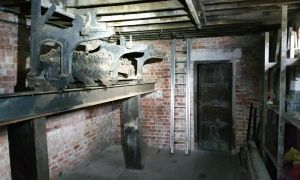 Downstairs in the locking room, we had a bit of a clear-out, and you can see the difference it's made! As well as disposing of a few items with no conceivable use (not even for display or reference), this involved removing the rather rickety timbers that must have supported an access platform for the lever frame. These came apart with worryingly little effort!