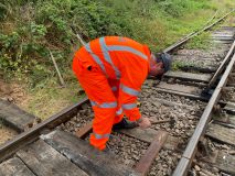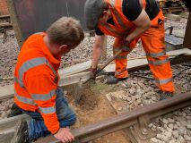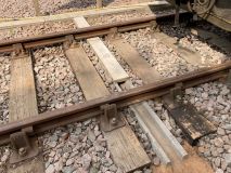 This week, we rounded-up a few more usable old sleepers, and finished laying them under the big gates at Ruddington. Not wishing to make too big a job of it, we left the cesses on either side with only one timber, rather than three abreast. This is partly because the gates have far less 'give' near the hinges, and partly because there will be rodding to accommodate under the gates there in due course.