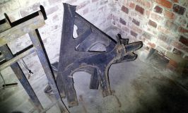 Also at H.H., we're eyeing-up the lever frame, or what remains of it. As mentioned before, the base of the frame is in good condition, having only been used for around 20 years since installation. It needs cleaning and painting. We have an extremely similar set of parts with which to build a usable frame, but the first step was to remove the old standards, that once rose to floor level. These were smashed by BR in the 70s, and we really cannot think of a use for them. Suggestions on the back of a postcard please!