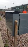 Now for the second part of the title, in Ruddington station we have repainted one of our Locs, as it was looking rather tatty even though it sits in full view of the public. Several months ago, we received a luminaire for Hotchley Hill’s sign, it has now received two coats of blue paint and is looking fit to be installed when we are ready.