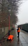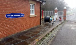After an early lunch, we made a start on the longer run, all the way along platform 1 to the signalbox. We found this rather more challenging, as the chambers get progressively deeper along the run, and the duct is relatively small. Still, after extracting a few errant roots, making use of the rodding set, and applying a little blunt force, we succeeded. As night fell the last few metres of cable were coiled-up in the new brick chamber outside Ruddington Fields signalbox.