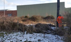 We scraped the ice off some scrap timber and took it down to site. We dragged the remains of the old fence out of the mud, and set about trying to redeem our proverbial sow's ear. Meanwhile, two of those tresspassers wandered up the four-foot towards us. One with a small dog, another wearing headphones! Warning such people off the line is not fun.