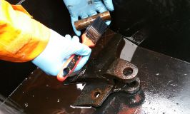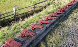Over the last few weeks, we have been pushing-ahead with refurbishment of Hotchley Hill's lever-frame, the parts that are usable. This has involved the usual routine of scrubbing and priming, with which we are all familiar!