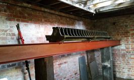 Of course, an inevitable part of scrubbing away so much rust and flakey paint is a cloud of dust. To help manage this, we removed the floorboards above that were put in in the 1970s as part of the building's conversion. These will have to go anyway, but doing it sooner brings airflow and light into the space, both welcome.