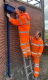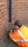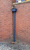 Third, we recently received a new downpipe for the front of the building, in our chosen Eastern blue. This will keep the wall of the relay-room dry. It functions as any downpipe should, and we've thrown a bucket of water into the top to prove it.