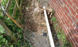 Behind the signalbox, there were once three downspouts, and four drains from the void below the floor. Today's job was to work out where these drained to, exactly, so they can be reinstated correctly.