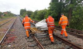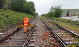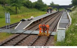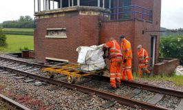 Lacking a suitable road vehicle, we hatched a scheme to move the door (and the rest of the junk collection) back to base on a timetabled passenger working. Since Rushcliffe Halt (RH) is a good 250yds south of the signalbox, it would have been quite impractical to carry everything there by hand. Happily, with only the one train in service, we were able to arrange possession of the down side of the loop, and make use of the Permaquip trolley stored at HH. You may recall our testing this a few weeks ago, in rather better weather!