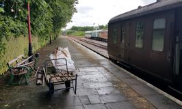 As the first train of the day disappeared around the curve to East Leake, we heaved the trolley onto the line and loaded it up from the pile in the old battery room. We rolled it up to the barrow crossing at RH, carried it onto the up platform, and went back for seconds. By the time everything was stacked up at RH, the second train was due from Ruddington, and we hurried into place, ready to load everything into the mk2 DBSO.