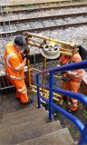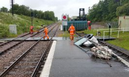 As arranged, there was a reception comittee waiting at the end of RF Platform 1, with hand trolleys to take everything to the appropriate corners of the site. Some to the metal skip, some to the S&T stores, and so forth. The door now awaits the delicate application of brute force to straighten it out, and put its hinges back in line.