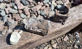 At the same time, we carried on clearing away the bottom of the embankment. This has been vastly improved by the efforts of Cutting 'Edge, so we're now down to dead branches and spoil. As always, the miscellany of broken items came to the surface. This time among the shattered glass, a ruined battery, three green British Rail teacups, and a mystery electrical box, badly corroded.