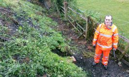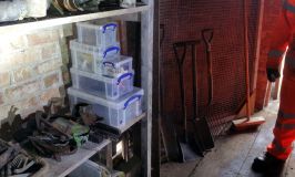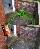 We also welcomed another new recruit, who joins the small army of Daves volunteering on the railway. He showed admirable enthusiasm for the less-than-exciting work at hand, first washing and wiping-down our collection of broken pottery, and then by cutting back the new growth on the side of the bank. It seems only yesterday that Cutting 'Edge laid it bare, but already brambly tendrils are reaching out to trip up the unsuspecting volunteer, and nettles are encroaching upon the stairs.