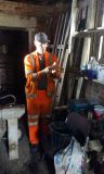 Meanwhile, one of our longstanding Daves cleaned up the area around the stove, again. A visit from the vandals a few weeks ago meant that some of the last remaining plaster on the walls had fallen down and needed sweeping up. This reveals floorboards that, while still able to hold a person's weight, are certainly in need of replacement.