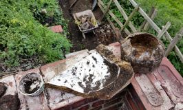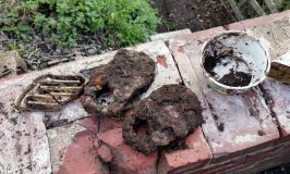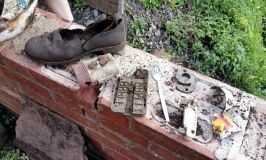 After the excitement of getting the roof repaired, normal service resumes with another day of digging-out the ditch. Surprisingly, as we get further from the building, the quantity of late-20th-century junk we find seems to be increasing! This week we found: