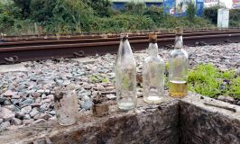 Now, you might think that rectifying that would be the work of a few moments with a shovel, and it was, but guess what? While putting the ditch to rights, we found even more bottles! Three of them, and two jars, to be precise. Two of the bottles look suspiciously like they contained spirits. Surely no railway employee would have been drinking on duty?