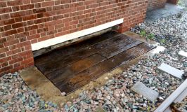 Down at HH, we carefully heaved the timber out and across the line, then breathed a sigh of relief as it slotted neatly into place, with no trimming required. After taking a moment to admire the torrent of rainwater draining off (not through) the roof, and into the culvert, we moved onto the second job of the day; handing over a recently donated display case for Rushcliffe Halt. After a bit of cleaning-up, this will hold a selection of ditch finds for display in the cabin there.