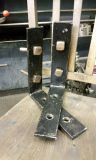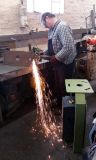 Nearby, we tackled another loose end for Hotchley Hill. The new steps down to the foot of the bank cross over a concrete pipe in such a way that one of the timbers cannot be retained in place with a stake. Unsurprisingly, this means it has fallen over, leaving the last step an odd height. To fix this, we have made a couple of iron brackets to hold the riser to the tread below. Today, we drilled them, and found some appropriate screws with which to hold them on.