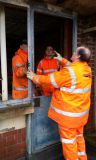 This is somewhat easier said than done, as the door is heavy steel, and barely fits in the van. It also only just fits around the bend in the stairs on the signalbox, but with four of us present, we got it into place, and were delighted to discover that it fits perfectly. When we started out, it was bent and twisted in at least three places, so this was something of a relief!
