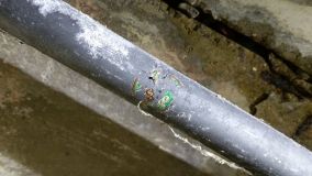 The first job was to remove the length of 1" steel conduit that ran just above head-height, carrying power wires from the box to the pole adjacent. We suspect this was being used as a way to climb up onto the terrace area above, so as well as tidying up that side of the box, removing it should discourage vandals a little.