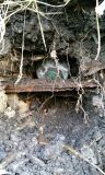 We didn't find any old glass milk bottles today. Don't worry, though - while cleaning out the ditch, a flash of green caught our attention, buried deep in the weeds. On further inspection, this turned out to be nothing less than a plastic milk bottle, presumably rather more recent. We let it be, for the moment, as there was a mystery iron bar holding it in place.