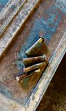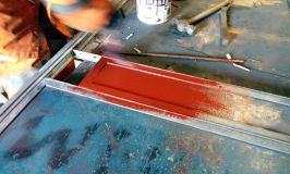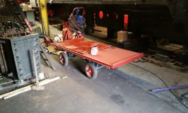 The door came back to the workshops at Ruddington. On a trolley there, we positioned it just where the other one had been, and split up. Part of the team took a diversion to strip some scrap coaches of useful parts and spares, before they leave site (and free-up valuable siding space). The rest set about the south door with a wire wheel, cleaning-away assorted muck, though much of the original paint remained so well-stuck we decided to leave it be. The last people to paint it did a good job! Then, we primed the inward-face, flipped the whole thing over, and repeated the trick with the outside. Red oxide primer dries much faster than gloss in this weather! Since painting metalwork is our favourite occupation*, we proceeded to fetch the steel plate, already cut to size, that will fill the hole where the glass once was. Checking for fit (Was there ever any doubt?), we wired-brushed it and gave it a coat of primer too. Even the small plate to fill the outside of the the lock-hole was primed! Not content even then, we gave the brass hinge-pins a scrub-and-fettle, and cleaned-out their oilways. A trip to the bolt store found some appropriate washers to hold the door at the right height.