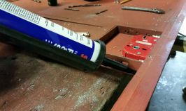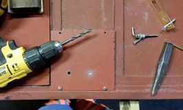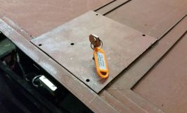 The southern door for Hotchley Hill is not finished, but not far off. We bedded-in the steel and wood panels for the top half of the door, and screwed them into place. The plates covering the lock-hole were drilled, tapped, and bolted down. We made a start on the keyholes and the holes for the handles, but the final work on that will have to wait until next week.
