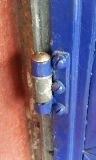 The hinge design allows a fair amount of vertical play. If anything was left of the original washers, it was lost when the door was first removed from its hinges. Luckily, Ruddington is home to an Aladdin’s Cave of fastenings, and we were able to find a selection of new washers in different thicknesses. We spent the rest of the morning delicately heaving on the door, lifting it just enough to insert each extra washer, and making sure the substantial weight is distributed evenly. This extra height means that the door swings freely, where before it jammed on the sill.